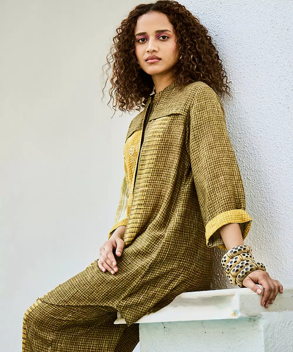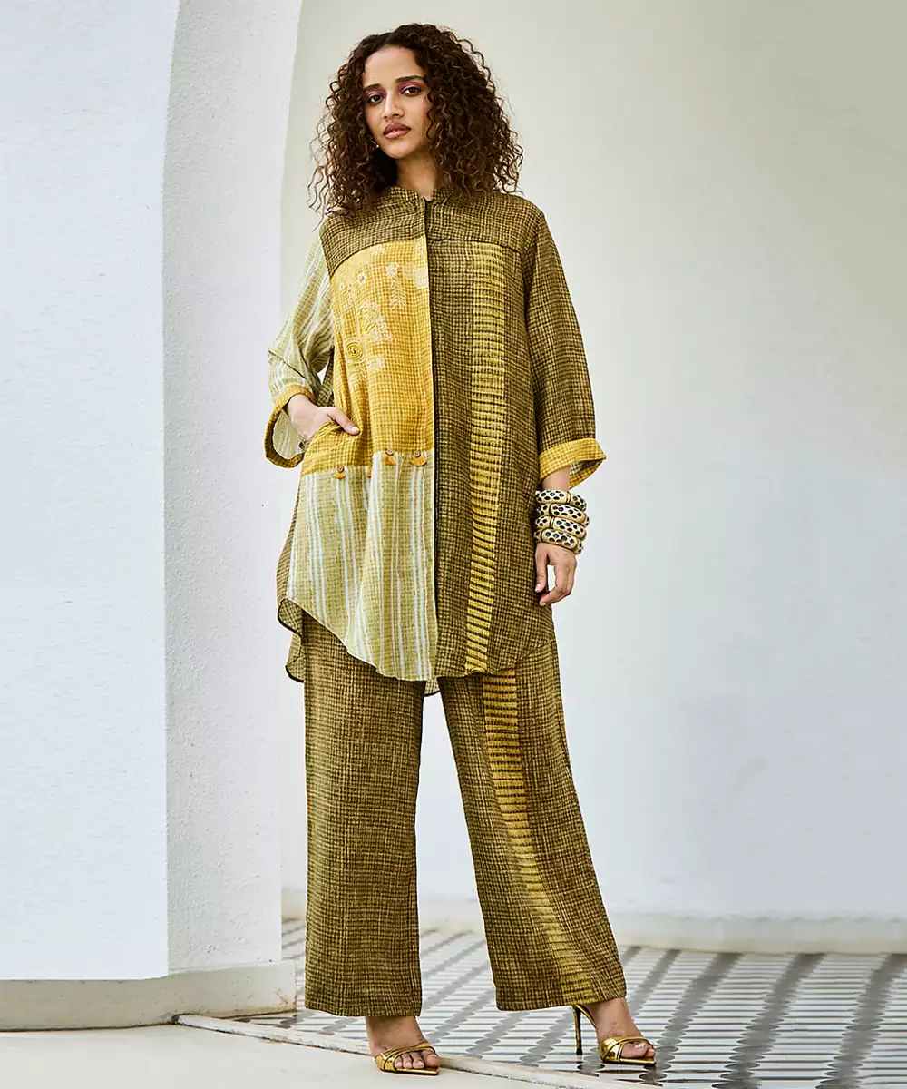 This Yellow Green Linen Kurta Set Features Refreshing Prints That Add A Vibrant Touch To Its Relaxed Silhouette. Crafted From Breathable Fabric, It Ensures All Day Comfort While Maintaining Style. Perfect For Casual Outings Or Daytime Gatherings, It Pairs Effortlessly With Minimal Accessories For A Fresh, Elegant Look.