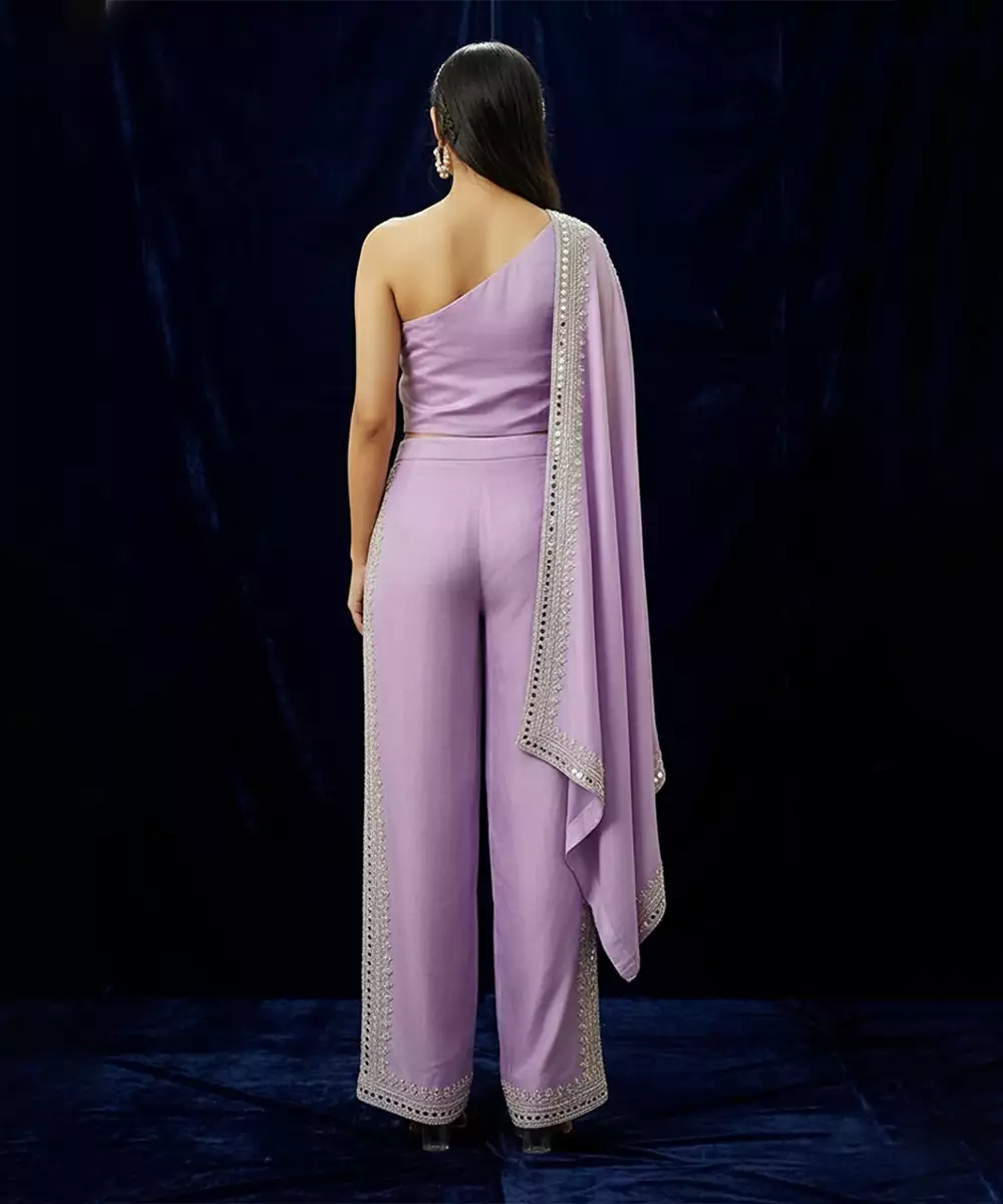 Purple Embroidered Silk Co Ord Set Crafted With A Rich, Lustrous Finish And Elegant Drape. Adorned With Intricate Embroidery That Enhances Its Regal Appeal. Designed For Comfort And Style, This Ensemble Is Perfect For Festive Occasions, Celebrations, And Evening Events, Offering A Refined Blend Of Traditional Charm And Modern Sophistication.